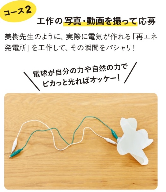 きぼうのでんき7月号で紹介した「手作り風力発電」のように身近にあるものを使った工作や、「こんなエネルギーの未来になったらいいな」という考えを絵にしてご応募ください。