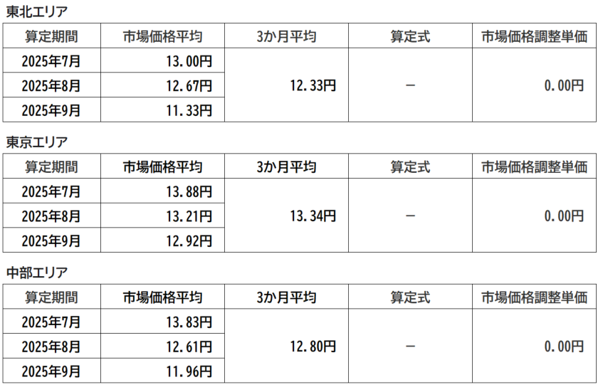 2025年11月検針分(2025年10月~2025年11月の電気ご使用分)の「市場価格調整単価」について以下のとおりお知らせします。