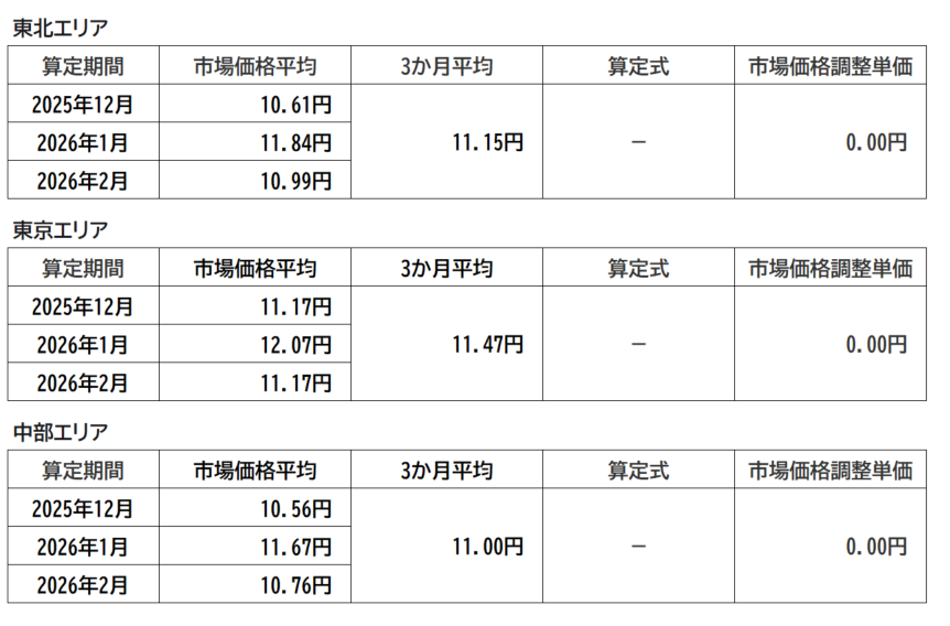 2026年4月検針分(2026年3月~2026年4月の電気ご使用分)の「市場価格調整単価」について以下のとおりお知らせします。