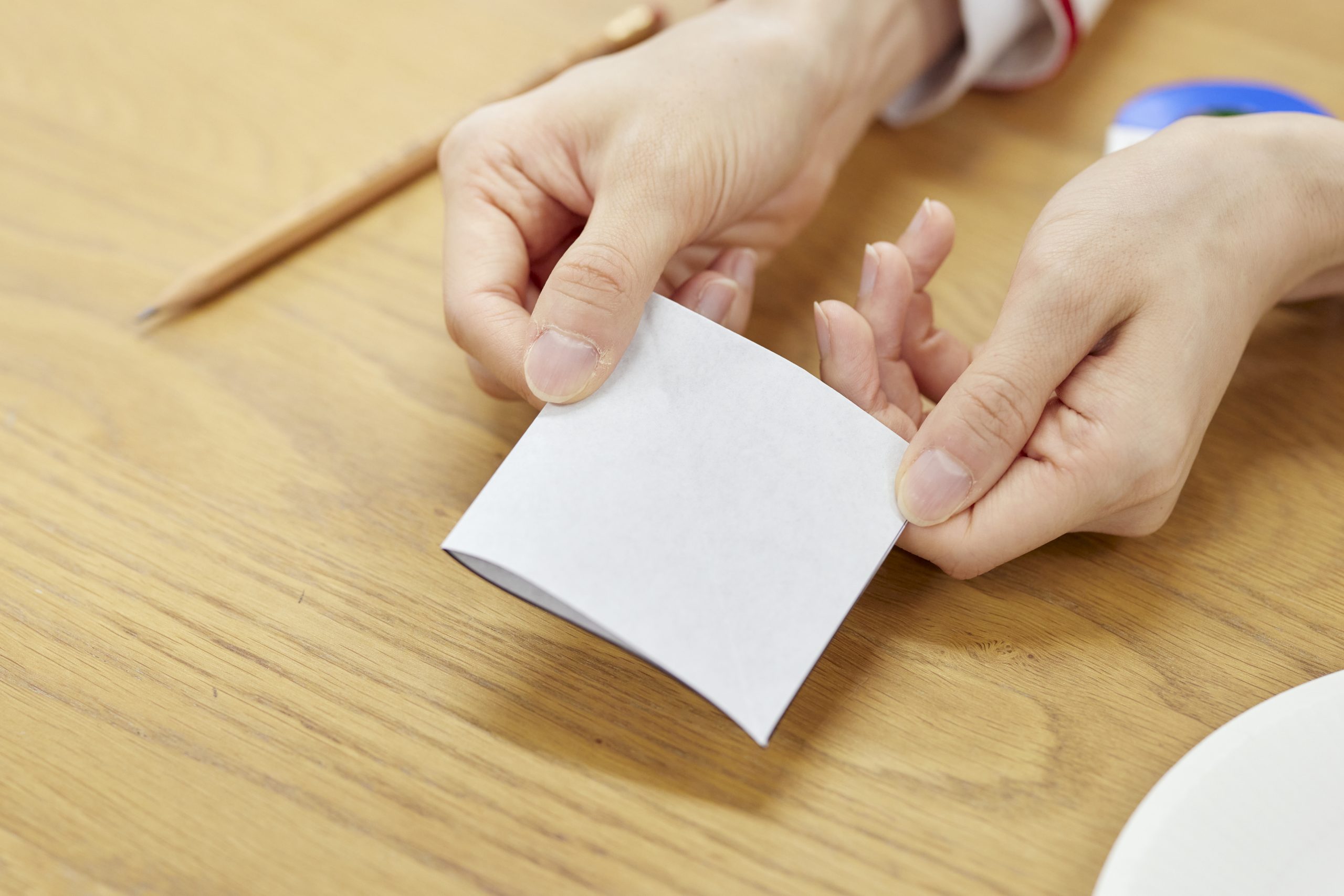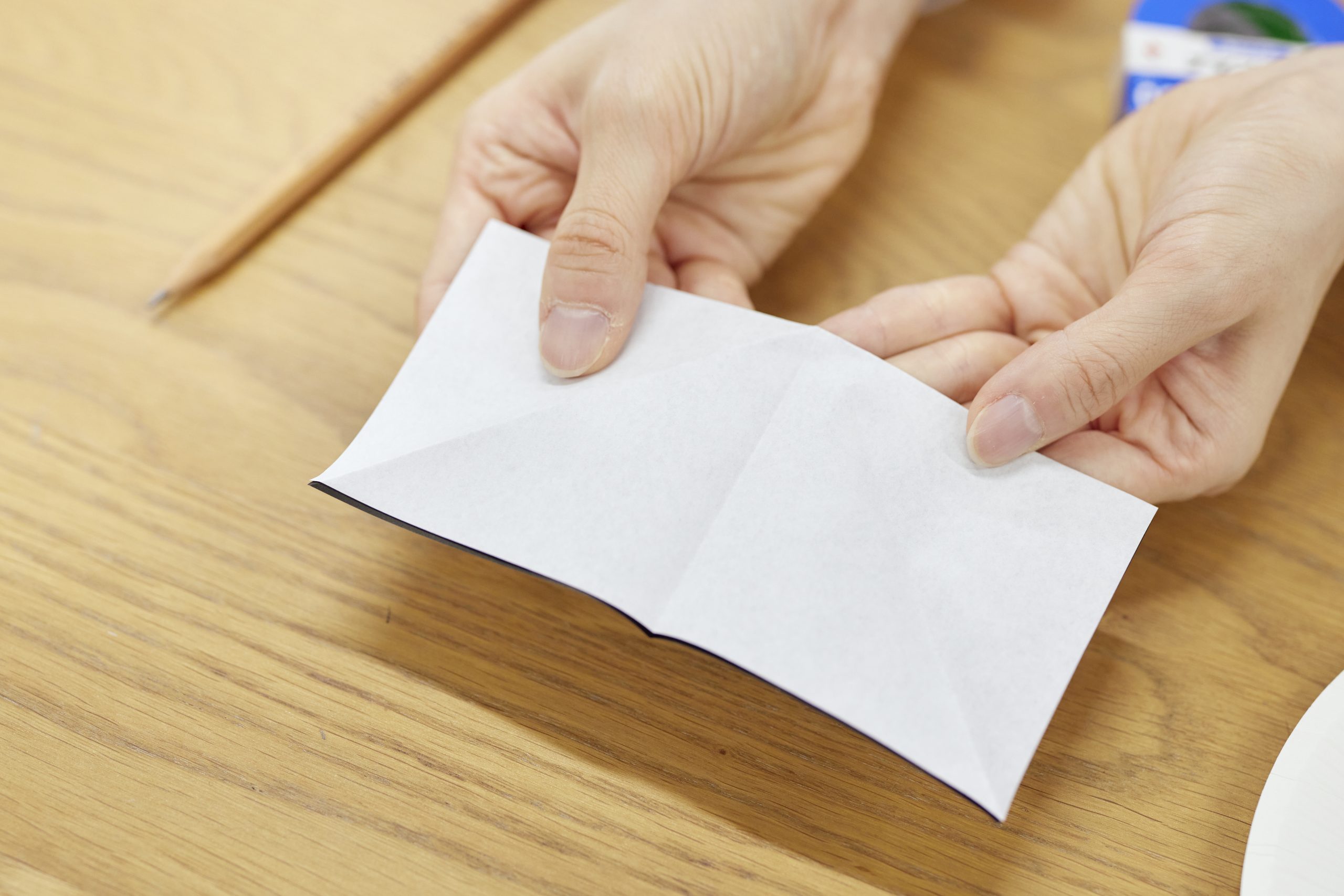 - ②もう半分にたたむ
