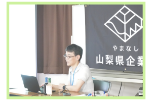 山梨県企業局の手塚さんが講師となり、柚ノ木発電所と再生可能エネルギーについて詳しく解説してくださいました。現在、山梨県企業局では、28の水力発電所を運営、県全体使用電力の8%、一般家庭13万軒分の電力を発電しています。
