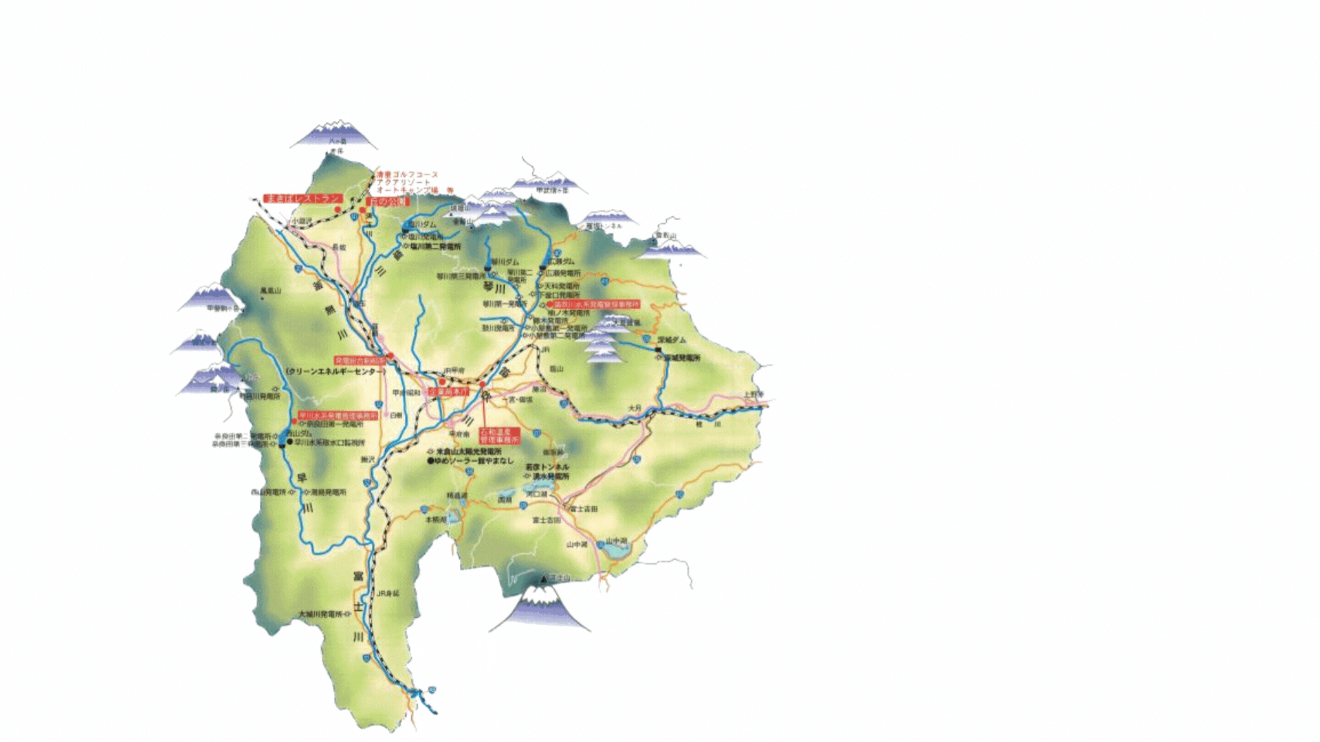 昭和32年(1957年)、西山ダムと西山発電所の運転開始から始まりました。現在では一つの水系において上流から下流まで複数の発電所を配置し、野呂川発電所で使用した水を奈良田第一・第二発電所で再利用、さらに西山ダムを経て西山発電所で活用し、シリーズで発電するシステムが確立されています。この一連の流れにより、水資源を無駄なく活用する効率的な発電体制を実現しています。